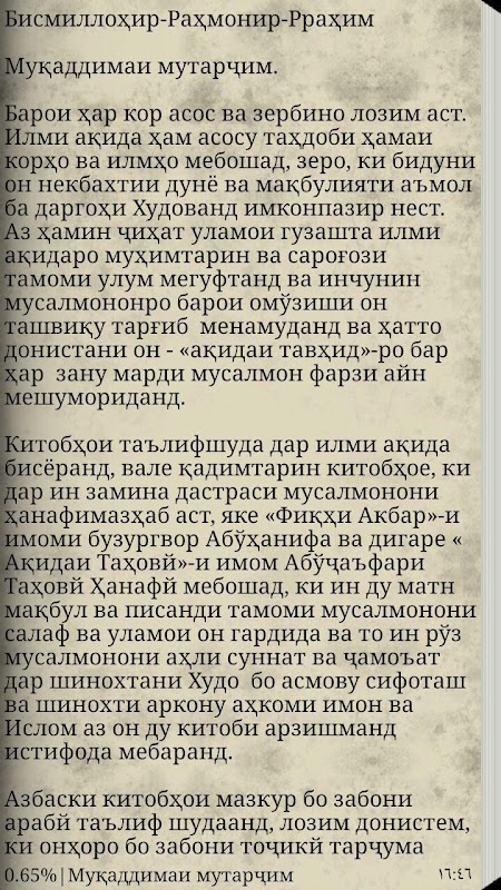 Банда Муҳаммадшариф Абдуалим ин китоҳи шарҳи Ақидаи Таҳовиро аз сайти Исламҳаусе гирифтам ва хатогии чопи хело зиёддошт онро саҳеҳ кардам ва ба шакли APK барои телефонҳои андроид омодааш кардам пас ин дар ихтиёри шумо дустон ҳаст.