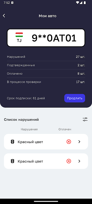 Gedetailleerde informatie: de applicatie toont de soorten overtredingen, hun aantal en biedt foto's van overtredingen, die op elk moment kunnen worden bekeken.