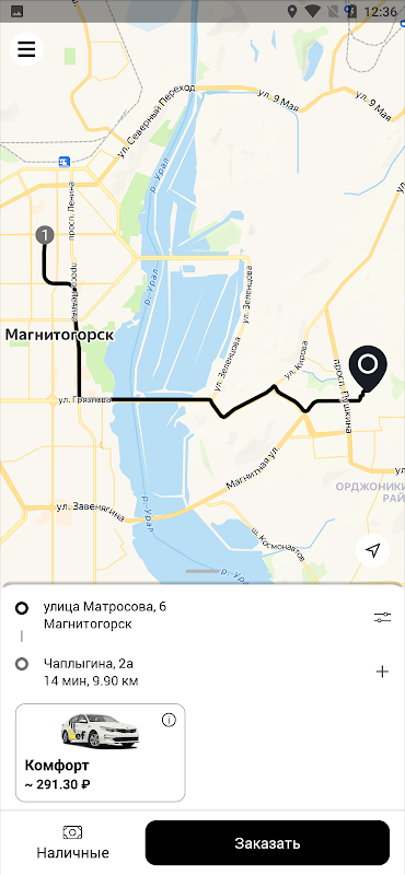 - Bestel een auto zonder de coördinator te bellen. Markeer een punt op de kaart, u hoeft niet handmatig een lang adres te schrijven;