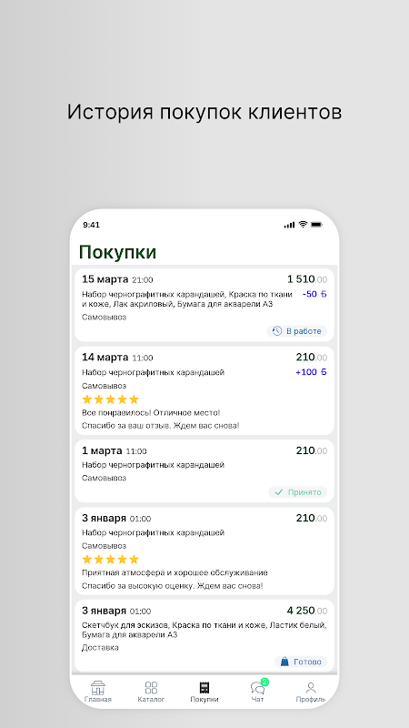 In de applicatie kunt u de levering van de benodigde producten regelen. Bestel vanaf 10.000 roebel. Gratis levering.