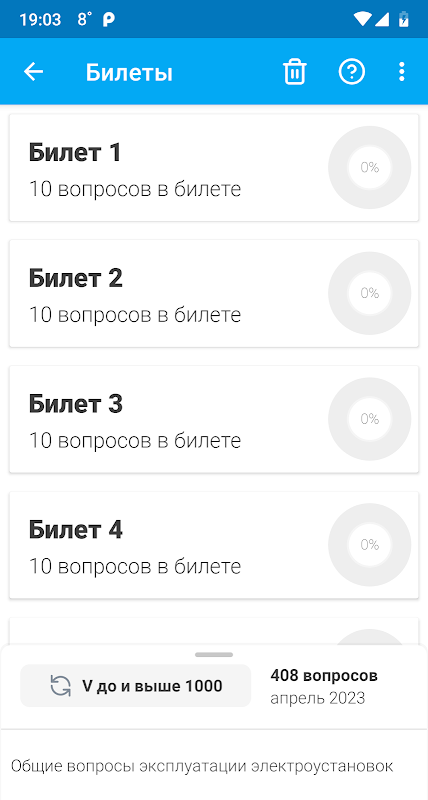 - "Tickets"-modus, waarmee u alle vragen van de categorie kunt bestuderen met behulp van tickets