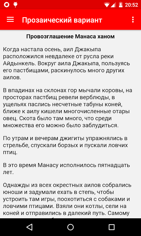 a) een proza versie van het epos van de opties Sagymbaya Orozbakov Uulu en Sayakbai Karalaev;