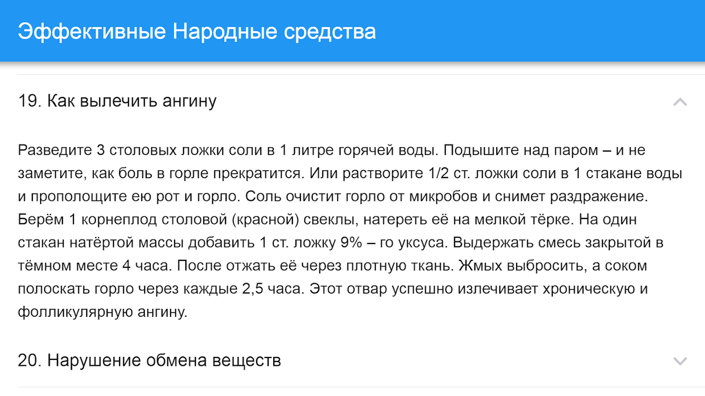 In onze applicatie besprak Effective Folk Remedies onderwerpen over: