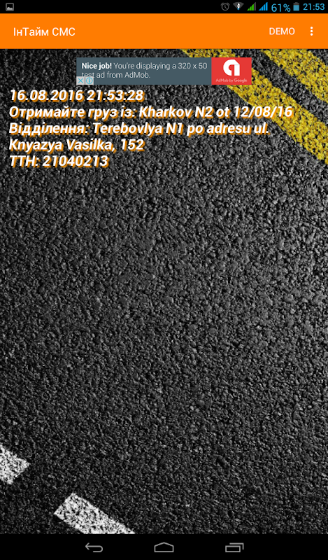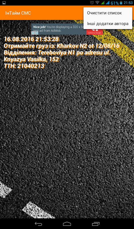 - вивід нотифікації про смс.