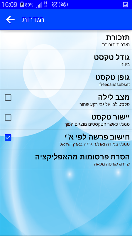 - הוספת גדלי טקסט בהגדרות.