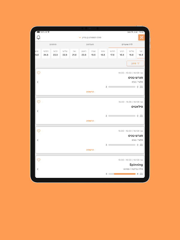 Welkom bij de toepassing van het sportcentrum aan de Ben-Gurion Universiteit van de Negev!