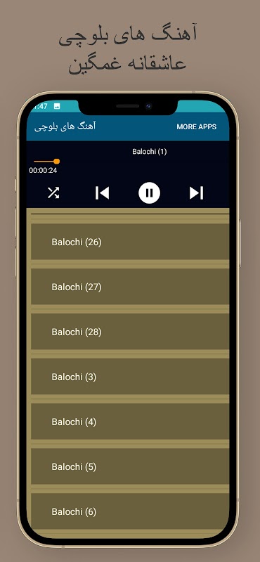 De Balochi-liedjes-app is een kans voor droevige muziekliefhebbers, omdat deze een uitgebreide verzameling droevige romantische Balochi-liedjes biedt.