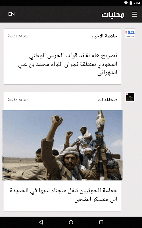 Nieuws uit Jemen als de actie zich ontvouwt. Artikelen, video's, tweets van populaire nieuws-sites in een app en gecategoriseerd per genre: het laatste nieuws, economie, sport, entertainment, ...