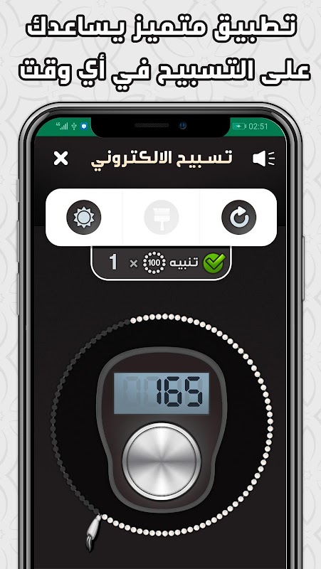 De applicatie bevat een elektronische rozenkrans en een tasbeeh-teller, met een elektronische tasbeeh-functie om de herinnering aan God te vergemakkelijken, naast nachtzichtfuncties voor het gemak van de gebruiker.