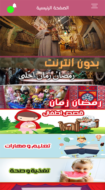 - تطبيق مكتبة رمضان بتطبيق يحتوي علي اغاني رمضان بدون انترنت و كمان بوجي و طمطم و بكار و عمو فؤاد و فوازير و الف ليلة و ليلة و النقشبندي و ابتهالات و كل حاجة زمان..