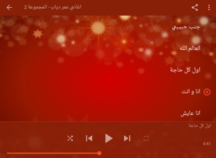 يمكن هذا التطبيق من تحميل جميع اغاني عمرو دياب من غير نت بما فيها اغاني عمرو دياب الجديده و اغاني عمرو دياب قديمه بدون نت و اغاني عمرو دياب بدون نت 2018 - amr diab او اغاني عمرو دياب بدون نت 2017
