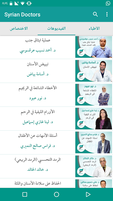 1 - قائمة بآخر الفيديوهات المقدمة من الأطباء بطريقة سهلة ومواضحة