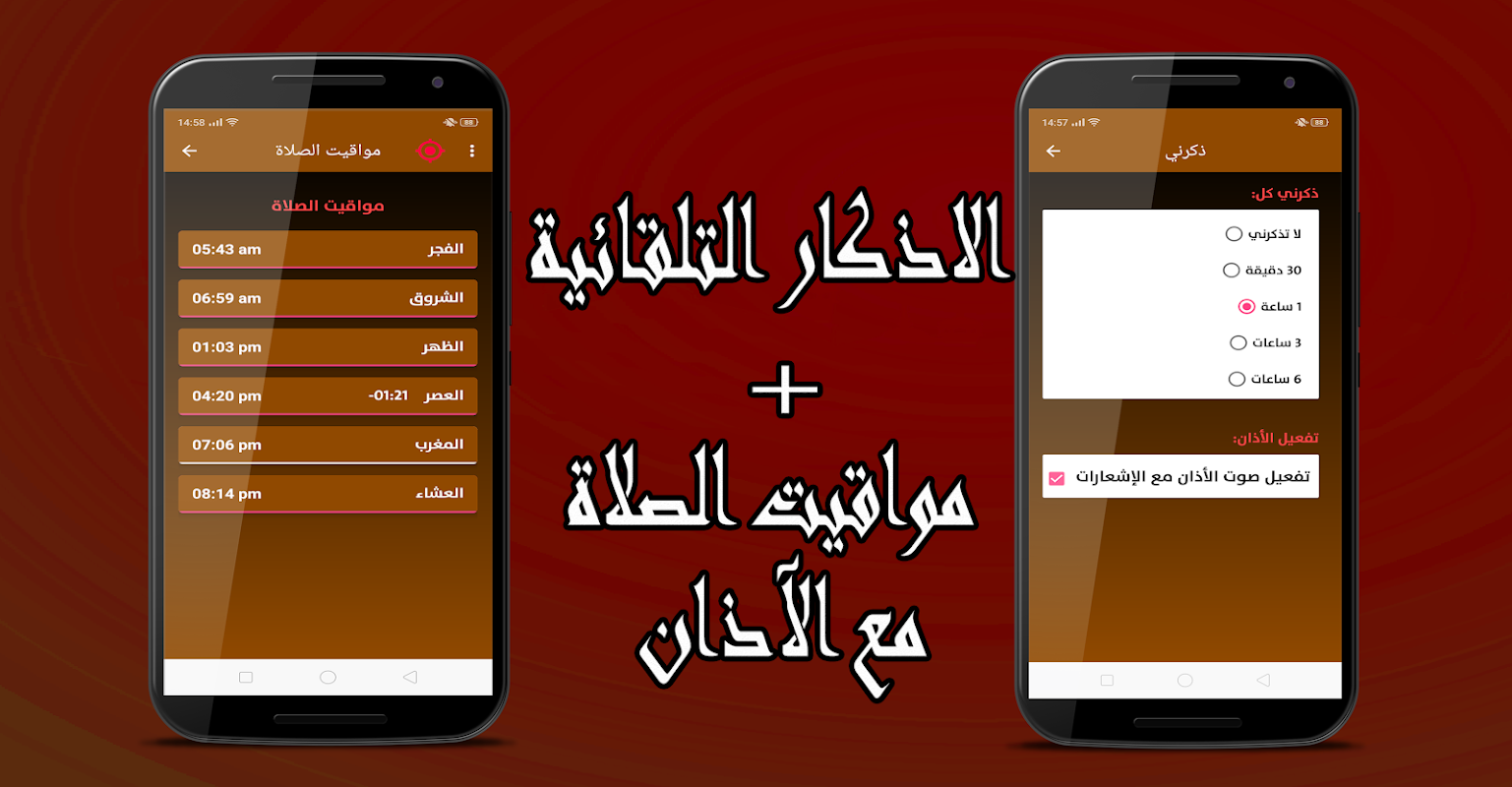 كما يحتوي على القران الكريم مطبوع للقراءة وأذكار اليوم والليلة وخاصية الذكر التلقائي وقصص وعبر والسبحة الإلكترونية ومواقيت الصلاة واتجاه القبلة والأربعون النووية وصحيح البخاري وخاصية حفظ العبادات وقسم الفتاوي و