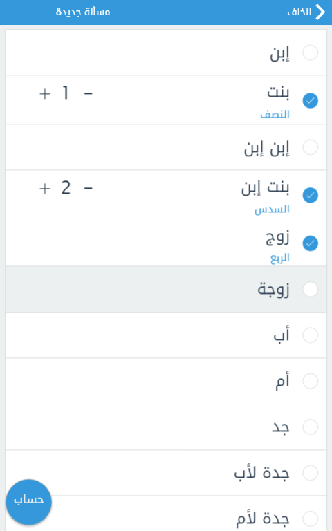 Applied ontworpen deze om de erfenis kwesties berekenen volgens de bepalingen van de islamitische wetgeving met de goedkeuring van de leer van Imam Zaid ibn Thabit, moge Allah tevreden met hem is de mening van de meerderheid van de geleerden, en we rekening houden bij het opstellen van deze toegepaste eenvoud in gebruik en de werkwijze.