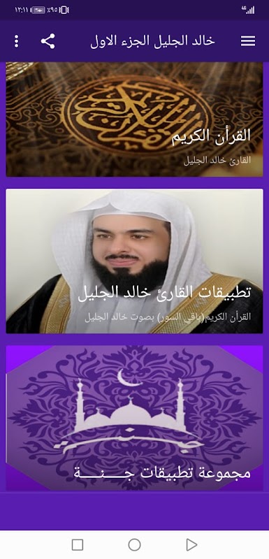 ويمكنك تحميل باقي السور و المقسمة على اربع تطبيقات من خلال خيار تطبيقات القارئ خالد الجليل الموجودة داخل التطبيق