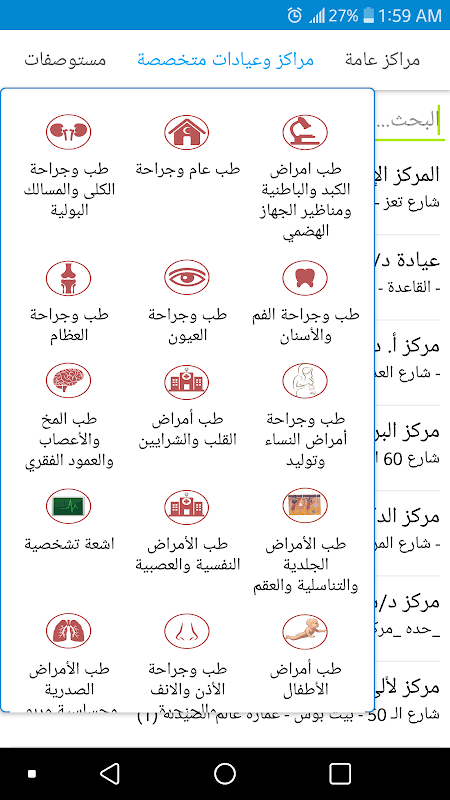 Het bevat meer dan (10.000) tienduizend artikelen en medisch nieuws. Het geeft ook de meeste medische termen weer. Dit deel vertegenwoordigt de grootste medische encyclopedie in het Arabisch met gedetailleerde uitleg over alle ziekten en bevat artikelen over de kwaliteit van leven en de dagelijkse gezondheid, waaronder (definitie van ziekten, symptomen, behandelingsstappen, De juiste medicijnen ... enz