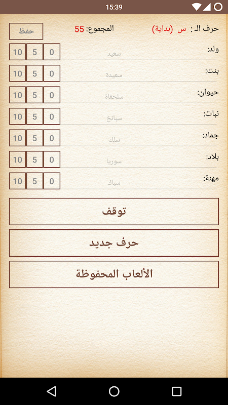 لعبة (انسان حيوان نبات جماد بلاد) المشهورة و المسلية. لعبة تساعد على تطوير المهارات و تنمية المعلومات لدى اللاعبين بالإضافة إلى أنها تساعد في سرعة البديهة. لعبت لأجيال على الورق والآن نقدم لكم إصدار الأندرويد منها.