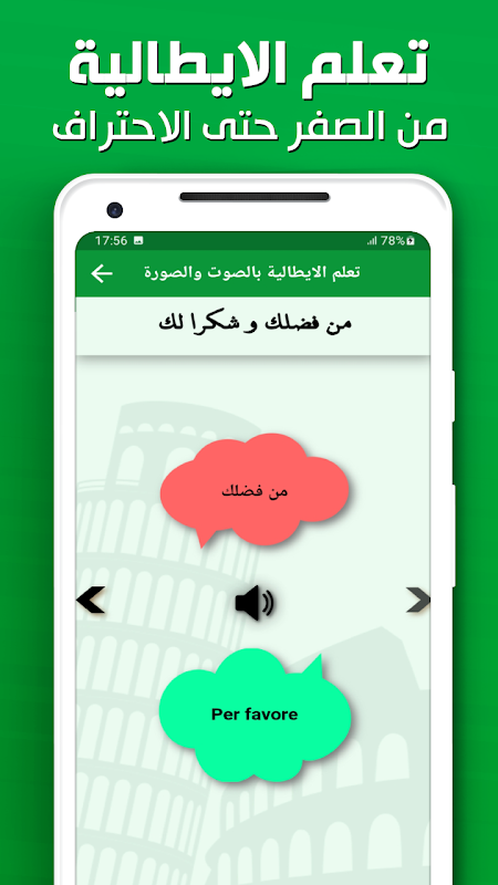 Met deze applicatie kun je de Italiaanse taal leren met audio en video, en met deze applicatie kun je Italiaans leren zonder internet en ook om de Italiaanse taal te leren met spraak en schrijven