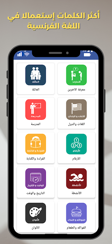 Frans leren voor kinderen en volwassenen. Elke zin heeft zijn vertaling in het Frans en Arabisch.
