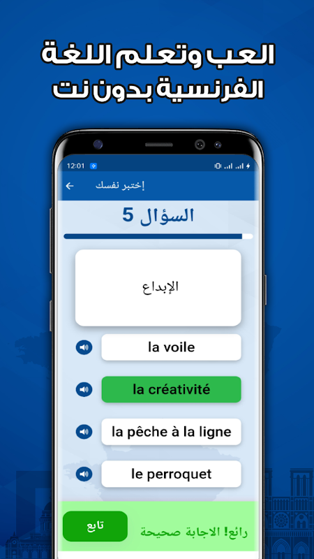 De applicatie voor het leren van de Franse taal is een uitgebreid boek dat verschillende lessen en oefeningen bevat, zoals (offline ondersteuningslessen, dagelijkse Franse taallessen en oefenboeken voor het begrijpen van de basisgrammatica). en communicatie, naast uitspraak van letters en boeken. Uitleg van grammaticaregels en lesgeven