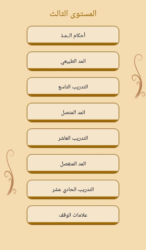 كل مستوى يحتوي على عدة دروس وتدريبات