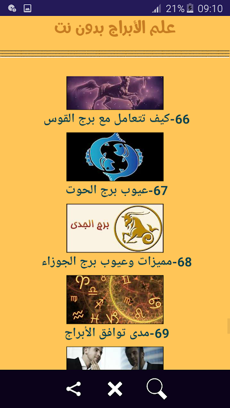 تطبيق توقعات الأبراج لعلم التنجيم والأبراج، ومنها :