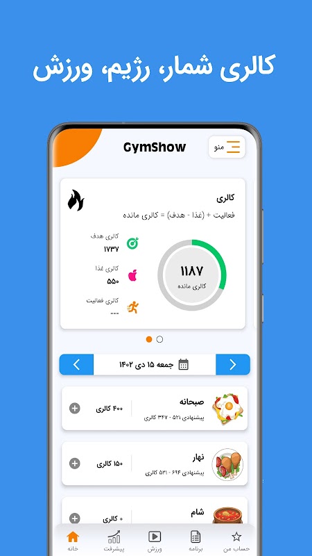 Over جیم شو: کالری شمار، رژیم، ورزش
