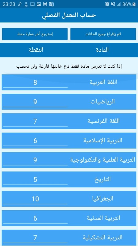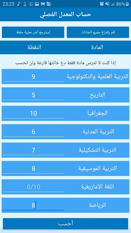 Het enige dat u hoeft te doen, is de leerlingenlabels in te vullen in de velden waarin de toepassing de berekening berekent van de Algerijnse primaire