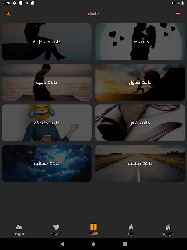 يوجد في التطبيق الكثير من حالات الفيديو والاقسام: