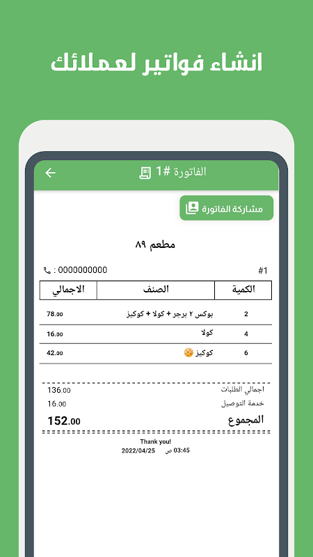 • Maak facturen om het winstpercentage van de factuur te kennen en deel de factuur met de klanten en in naam van de winkel en het contactnummer