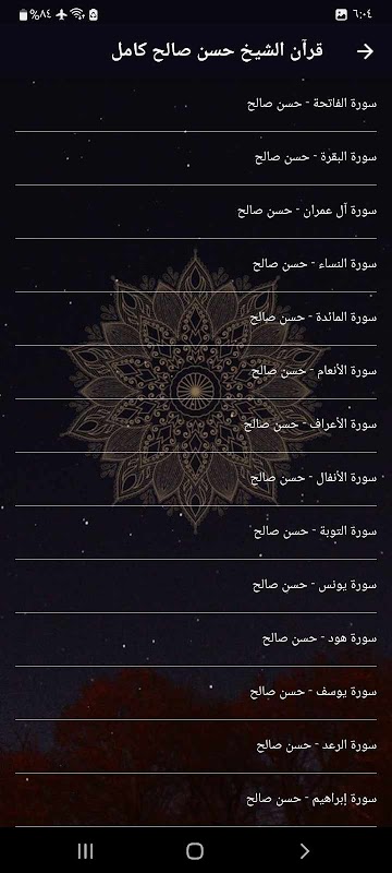 Download the “Hassan Saleh Holy Qur’an without Internet” application, listen to the Holy Qur’an in the voice of Sheikh Hassan Saleh at any time and any place, directly from your mobile or tablet device. This application provides you with surahs of the Holy Qur’an, free of charge and available for download on the Google Play Store for Android devices. Enjoy the most beautiful humble recitations of Sheikh Hassan Saleh with ease, thanks to the simple and direct user interface that makes using the application a smooth and comfortable experience.