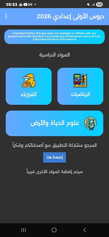 Belangrijke mededeling: Deze app maakt geen deel uit van de overheid en biedt geen officiële overheidsdiensten. Let op: een duidelijke bron van overheidsinformatie is https://telmidtice.men.gov.ma en https://moutamadris.ma.