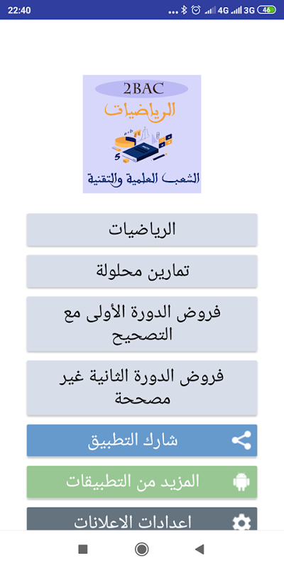 نقدم لكم هذا التطبيق الجديد يحتوي على دروس تمارين الرياضيات الثانية باكالوريا مختارة بعناية, تمارين وحلول ممتازة لجميع الدروس نهدف من نشرها الى مساعدة تلاميذ الثانية باكالوريا على الاستيعاب و الفهم الجيد استعدادا لإجتياز فروض المراقبة المستمرة الدورة الثانية والدورة الثانية و الامتحانات في مادة الرياضيات.