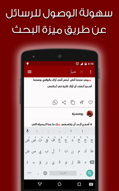 Deze applicatie maakt het mogelijk om de grootste collectie van de liefde blader naar Nizar Qabbani en dromen Mosteghanemi en andere berichten en deel ze over social networking-toepassingen