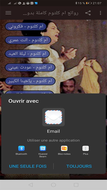 L’application des chansons oum kalthoum sans Net est une excellente application avec les meilleures et les plus grandes chansons de la planète de l’est ou de om kalthoum.