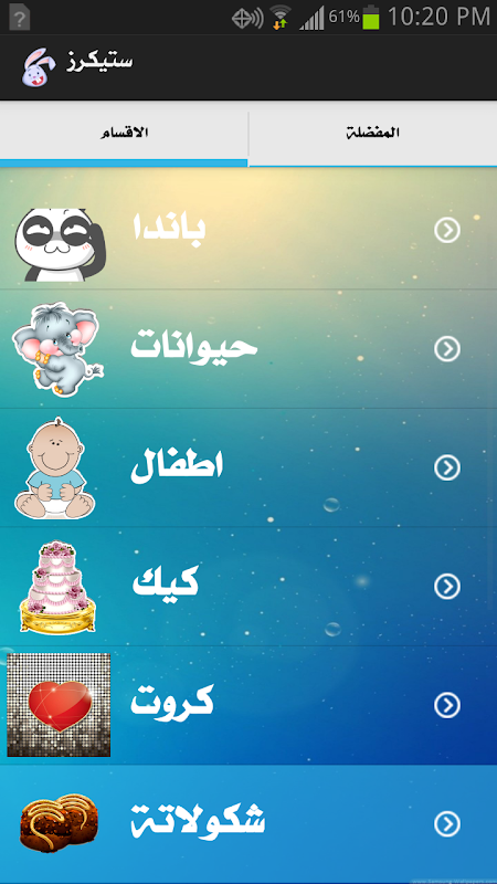 ماعليك الا اخيار القسم بعد ذلك اختيار الاستيكر المناسب لك ومشاركتة في شبكتك الاجتماعية المفضلة.