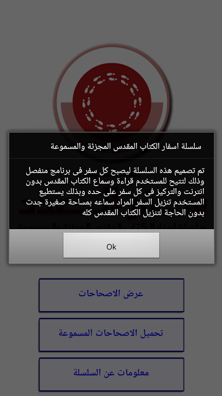 - جميع الاصحاحات المسموعة تعمل بدون الانترنت ( بعد الاسفار تحتاج تنزيل الملفات الصوتية مرة واحدة فقط)