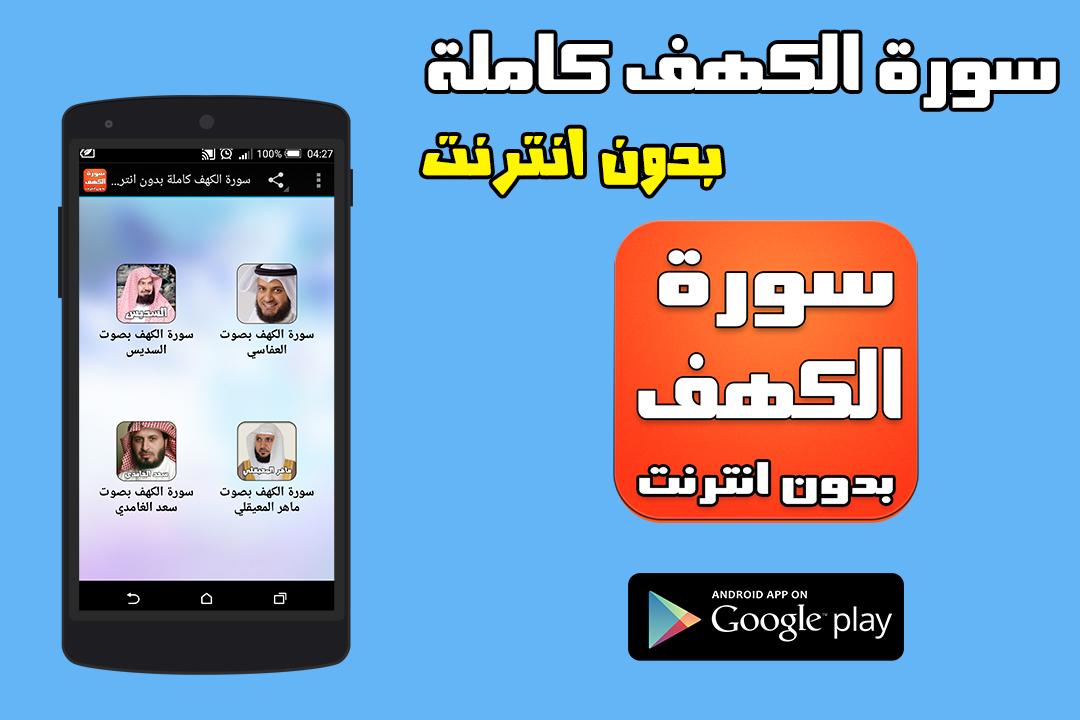 سورة الكهف مكتوبة تطبيق خاص يمكنكم إلى الاستماع الى سورة الكهف مكتوبة وكذا حفظ سورة الكهف صوت بدون انترنت، بصوت كل من الشيخ سعد الغامدي، الشيخ عبدالرحمن السديس ، القارئ مشاري العفاسي، الشيخ ماهر المعيقلي، و أحمد بن علي العجمي (المصحف المرتل ) بدون انترنت .