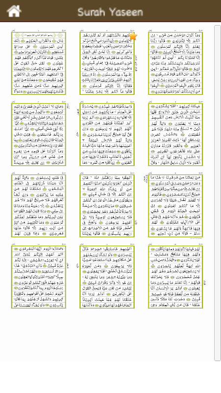 Surah e Yaseen is het 36ste hoofdstuk in Quran Sharif. Deze Surat Ya Sin is een geschenk voor iedereen die Sura e Yaseen wil lezen zoals op de gewone papieren versie van de Heilige Koran. Het is prettig voor de ogen en is met Engelse vertaling en Hindi-vertaling en nog veel meer.
