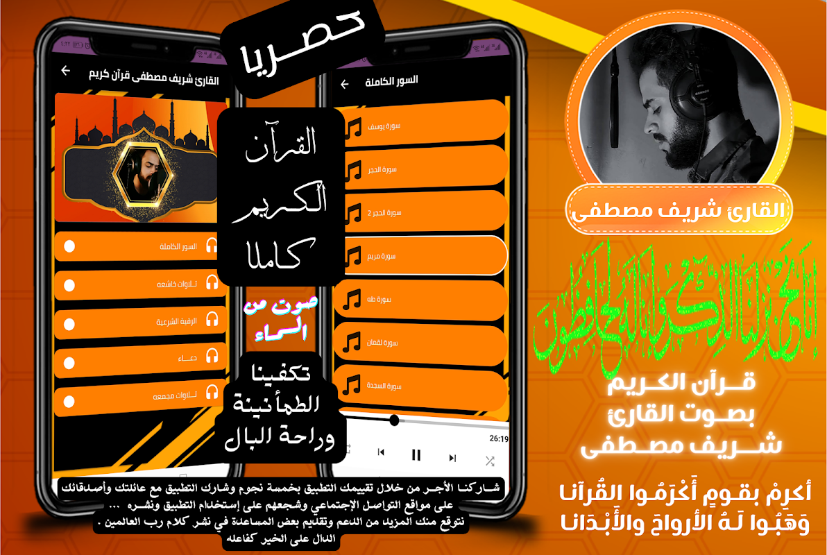 Dus, als je op zoek bent naar een recitant Sherif Mustafa die de hele Koran kan reciteren, dan is deze app perfect voor jou. Het bevat de Sherif Mustafa Koran en de Sharia-roeqyah met de stem van Sherif Mustafa.