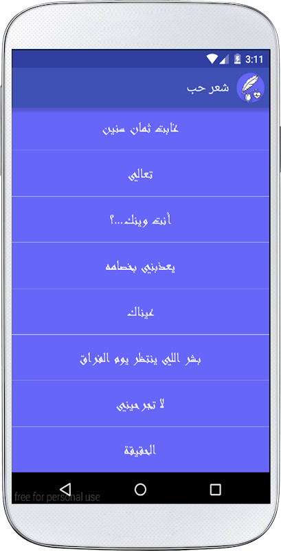 و يوجد في التطبيق شعر حب عراقي كما اضيف الى التطبيق البعض انواع شعر رومنسي و راقي و كمان اخترنا لكم شعر خليجي و ايضا حب من طرف واحد