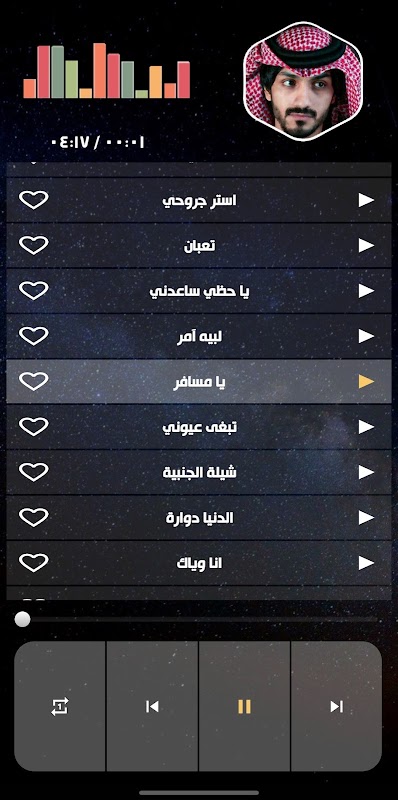 Alle nummers van de artiest Badr Al-Ezzi in één applicatie zonder internet.