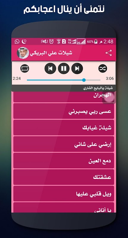 تطبيق يحتوي على جميع شيلات صوت العروبة علي البريكي بدون انترنت