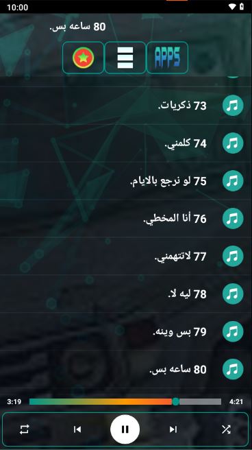 Mis de kans niet om te genieten van de toepassing van 100 verschillende shilat 2024 zonder internet en luister naar de beste shilat die je een glimp geeft van de prachtige Arabische muziekcultuur. Hier is de inhoud van de applicatie:
