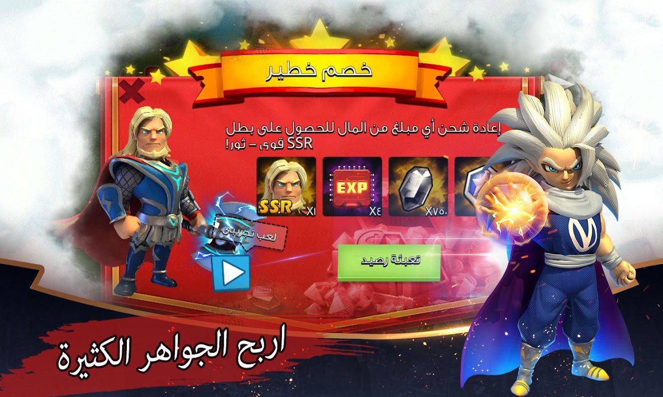 هنالك الكثير من وحوش الزومبي: الصياد و العملاق. يمكنهم مداهمة القاعدة الخاص بك ونهب الموارد! لا تخف، طور أبطالك الخارقين وتمتع بمصارعة وقتال وحوش الزومبي، وكما أيضاً يمكنك التحكم في العمل !!! يمكنك تفعيل الأبطال في الوقت الحقيقي وتطويرهم للتمتع أكثر بمصارعة وحوش الزومبي !!
