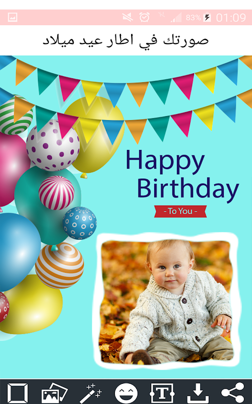 يمكنك تطبيق صورتك في اطار عيد ميلاد من 🎂 :