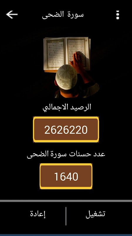 بعد قراءة السورة قم بتفعيل العدَّاد