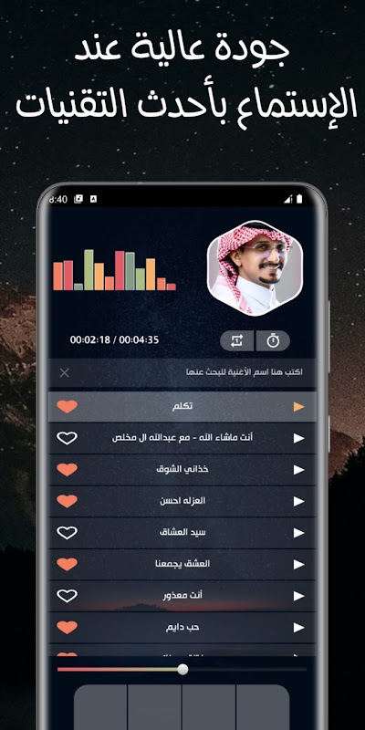 De vernieuwde toepassing van Ghareeb Al Mukhles-liedjes, liedjes en beltonen in hoge kwaliteit en zonder internet