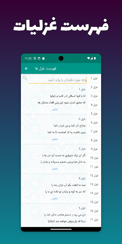 Hafez Shirazi's horoscoopprogramma met betekenis en interpretatie samen met meer dan 400 gedichten en sonnetten van Hafez Shirin Sokhon.