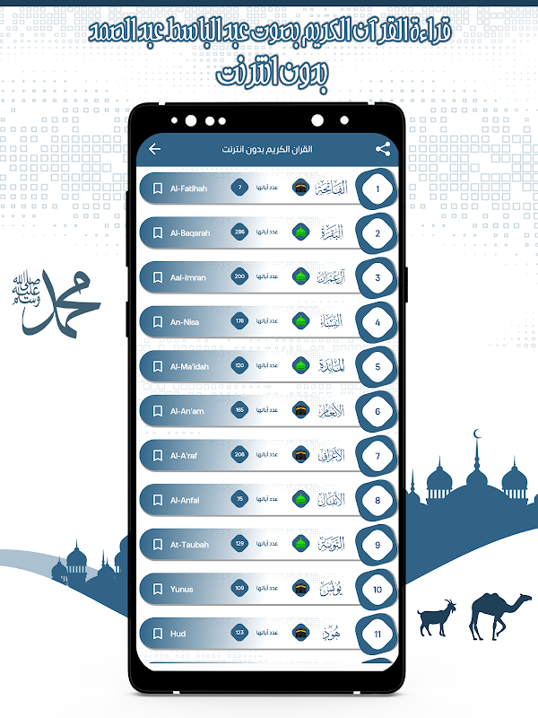 Nu kunt u de applicatie gemakkelijk gebruiken en luisteren naar de soera's van de Heilige Koran in de stem van Sheikh Abdul Basit Abdul Samad en een prachtige staat van geloof beleven waarin u zich verdiept in de betekenissen van de Edele Koran, genietend van de stem van Sheikh Abdul Basit Abdul Samad, die u met zijn kenmerkende stem naar een andere wereld voert.